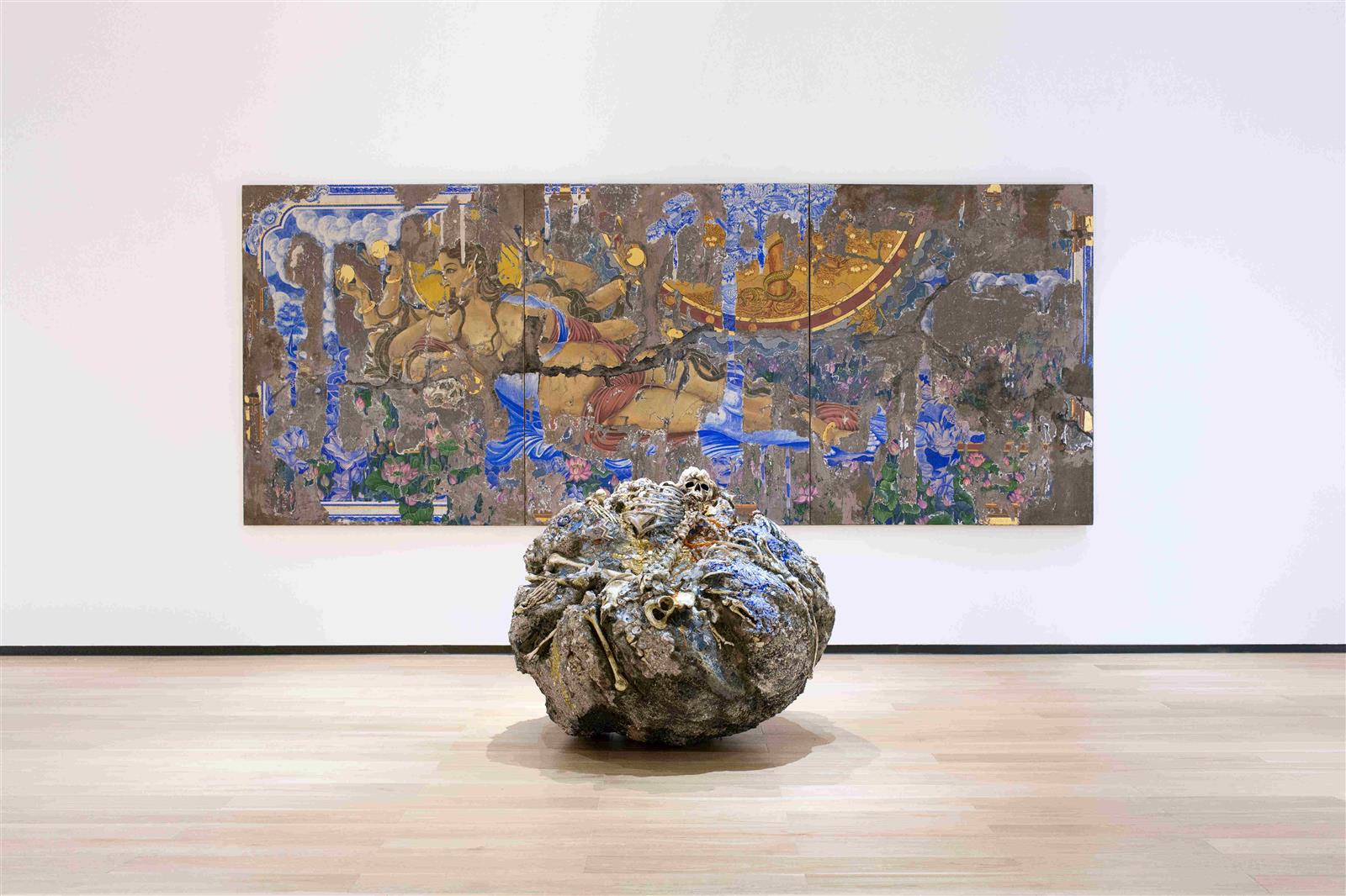 潘娜潘•尤曼妮将现成物品与自然元素相结合,创造出令人想起泰国传统艺术和建筑的作品。通过作品,她探索了佛教哲学和宇宙学。她的作品以失落、痛苦、毁灭和死亡,以及重生的业力循环为主题,赋予泰国传统艺术新的设计和图腾。