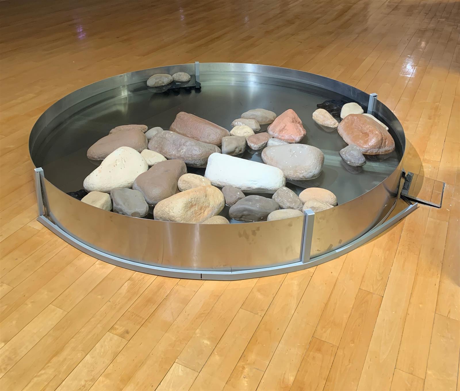 从陶瓷源於土石,我产生了用陶瓷再现土石的想法。而特殊制造工艺使瓷石内部中空,能漂浮在水面并随着水流撞击发声,作品试图改变人们对平日习惯了的石,以及陶瓷常规展示方式的认识。而“发声”亦将真实的碰撞展现得淋漓尽致。碰撞在每块石头间,在静谧的山谷里,亦或是观念上的撞击,望能通过作品将一些无形的反响展现出来。对观者而言,不论是孩童、青少年、未曾对所谓艺术感兴趣的成年人,乃至一生未曾出过山村的老人,他们看来石亘古不变的自然属性此时却被打破了,同样都产生好奇,生发感触。这不起眼的石却是普遍的,无论哪个地区民族的人都见过它,这也是我想挖掘的普遍性的人生体验。