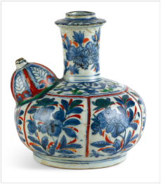 明永乐年间,郑和七下西洋,瓷器是重要的国礼之一。明初至中叶,明政府实施“海禁”政策,中止民间对外贸易。欧洲的葡萄牙人於十六世纪初率先到达中国沿海,从事陶瓷为主的商品贸易,获利丰厚。葡人利用上川岛和澳门转运大量瓷器。在1600年前後,每艘克拉克船运载往欧洲的瓷器多达六万至十万件。随後,西班牙、荷兰和英国等欧洲国家,也陆续来华加入陶瓷贸易的行列。中国的青花瓷经澳门走海上丝绸之路抵达欧洲,澳门成为明代外销瓷重要中转港,也成为第一波全球化浪潮的重要场境。