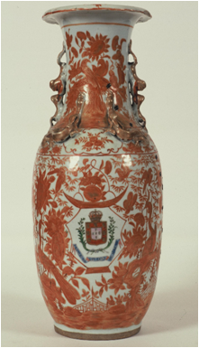 清代的广彩瓷器是以江西景德镇白瓷,在广州地区进行加工上彩的外销瓷器。自乾隆开始到清末,广彩瓷器外销相当繁盛,来样加工大量出现,为数不少来自西洋特别订制,故仿照西洋绘画的方式处理画面,绘制西方人物故事等创新内容不断出现。图案纹样呈多样化,除了传统的花鸟鱼虫、人物故事、山水风景、博古图案以外,亦有按照外商提供的纹章图样等绘制纹章瓷器,如具西方宗教或西洋政府徽章的特有纹饰。受来自西洋订单要求,广彩瓷器整体图案装饰性强,丰满紧凑,加上大量运用织金工艺,让广彩瓷器呈现出金碧辉煌、色彩绚丽的独特风格。