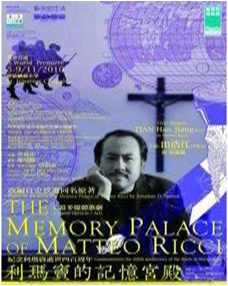 以史景迁教授同名原着《利玛窦的记忆宫殿》为蓝本,改编成一出融合舞台表演艺术新思维的七幕现代歌剧;以紮实的文本结构为地基,灵活而大胆的当代音乐为梁柱,加上宜古宜今的木偶演出及多媒体三维视讯,借歌声影像空间道出明朝万历年间来华传教的耶稣会士利玛窦在中国借传授西方记忆术以布教的种种传奇,兴建出超越时空和文化的记忆宫殿。本歌剧由《诗人李白》的编剧廖端丽负责撰写剧本,许敖山作曲,国际驰名男低音歌唱家田浩江担演利玛窦一角,将会在这所宫殿之中,与一众虚拟角色透过新颖的音乐、歌唱、舞蹈、偶戏等表演形式,引导大家探索这位文化交流先导者的心路历程。