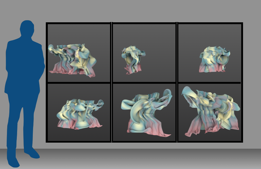 多年来,Sarah Kenderdine和邵志飞一直与赵式庆及中华国术总会在香港合作,他们以捕捉香港着名武术大师的功夫表演动作(MOCAP)为基础创作艺术作品。“功夫动作视觉化”是一个全景视频艺术作品,通过它可以重新演绎和设想这些功夫大师的表演。将捕捉到的运动资料经过数字处理,来阐述大师们运动的内在动力和美学。他们追踪功夫演员身体各部分的运动路径,准确展现他们身体的相对运动速度和空间位移。该艺术作品是专门为澳门双年展设计的,它在三个相互垂直的LED萤幕上从六个角度360度呈现功夫大师的表演。六种不同风格的运动图形视觉化加之四种不同的动作捕捉资料,观众可以从互动式控制台提供的两两组合的24种变化中进行选择。这些带有分析性的艺术表现形式结合了功夫的具体知识,体现了动态的美学互动,并激发了我们对这种深厚的武术传统的欣赏和理解。