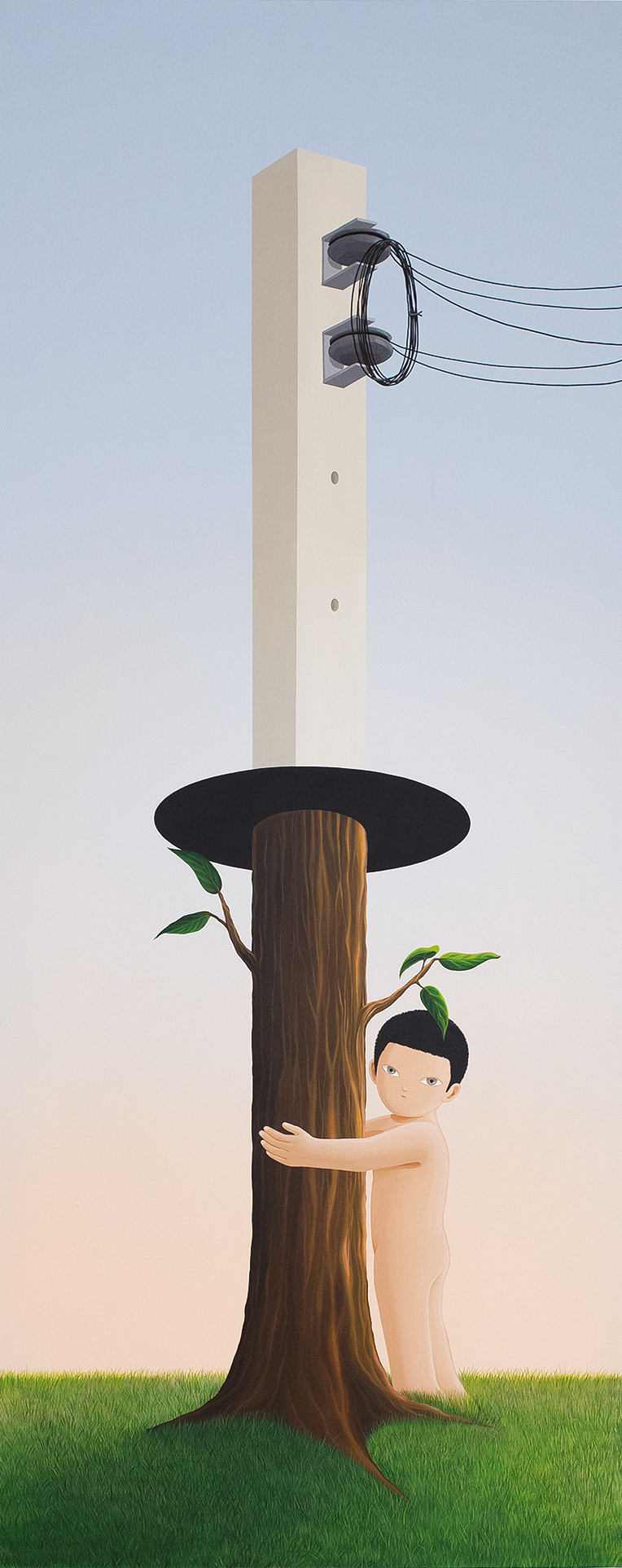 这幅作品展示了人与自然的关系。大自然是不可或缺的,她给予我们一切赖以生存的资源。自然的馈赠给我们带来欢乐,为我们创造生活的平衡,但我们往往会忘记它的重要性,忽略身边美丽的自然环境。我们一味追求繁荣发展,最终破坏了自然和环境,忘记了青山绿水、风和日丽的环境给我们带来的欢乐。