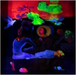我对古迹的热爱、对经典传统作品的研究以及对生活感官的追求,让我想要透过中国的技术来展现每一种元素的本质:当代世界中的岩石、树木、水、人物。它们是既有发展前景又具有传统价值的元素。作品明亮的色彩(现代城市夜景的特徵)以及其在黑光下的曝光,彰显其色彩强度,同时又赋予了如根植於古希腊绘画的视角的西方价值观。传统要麽被传承,要麽被颠覆。夸张的色彩与中国传统形式相协调,在某种意义上吸引了观众,使其主动沉浸到作品中。这一作品以梦幻般的现代社会的强度来突出传统的精神层面,成为中西文化对话的基本前提。