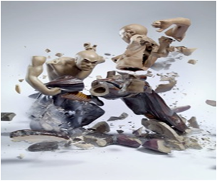 瓷器雕像从三米高的地方掉落在地上它们撞击发生的声音和快门的声音同时响起。其结果是:令人不安的美形成了清晰锐利的图像,超过其各部分的总和。通过高速摄影使人眼可见雕塑从完好过渡到碎裂的瞬间模样。真正吸引眼球的并不是碎成碎片的瓷器雕像。作品的魅力在於它捕捉到了动态时刻,似乎让时间停下来,让时间本身可见。