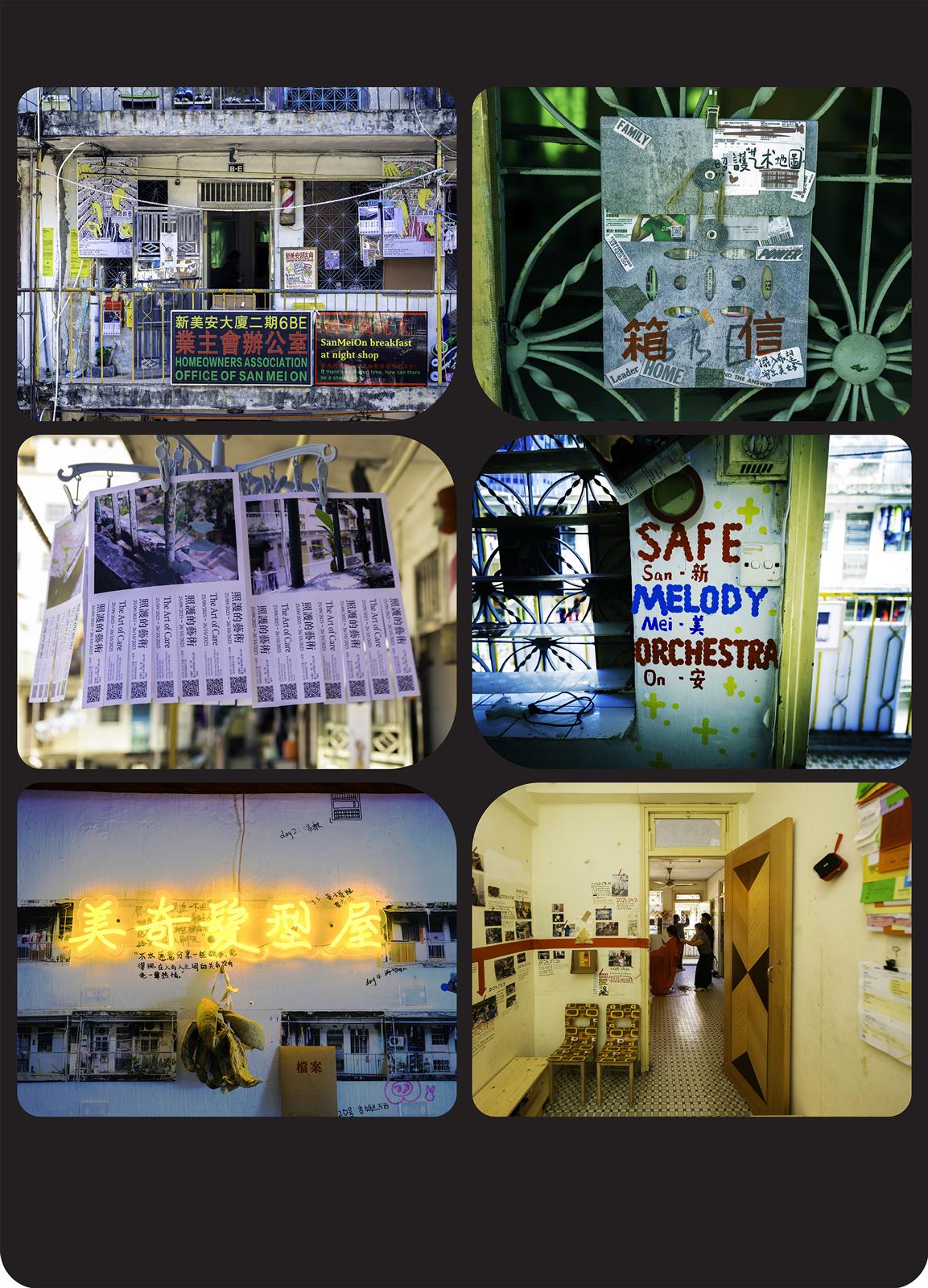 展览《照护的艺术》 「在此意义上,这不是一群艺术家的联合展览,而是一群艺术家为居住在新美安的人共创的一场展览。更准确地説,这是一场关於社区照护者红姐冯娇雄,或者説,所有那些被称呼爲“红姐”的新美安人的展览。但与其说这是一场展览,不如说这是一次以展览之名的邀约——我想邀请大家,带着各自的目光,来到新美安,习得“看见”的力量! 只有当社区照护真正进入到公共视野的时候,我们才有可能寻求一种可以开启社会修复的方法与途径。」——节录发起人何志森为展览撰写的补充说明
